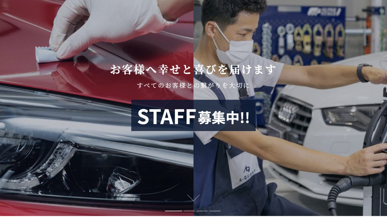 広島県広島市西区観音新町にあるエークエストでは、板金塗装や自動車修理、自動車整備、カーコーティング、車検、自動車販売・買取などを行っております。